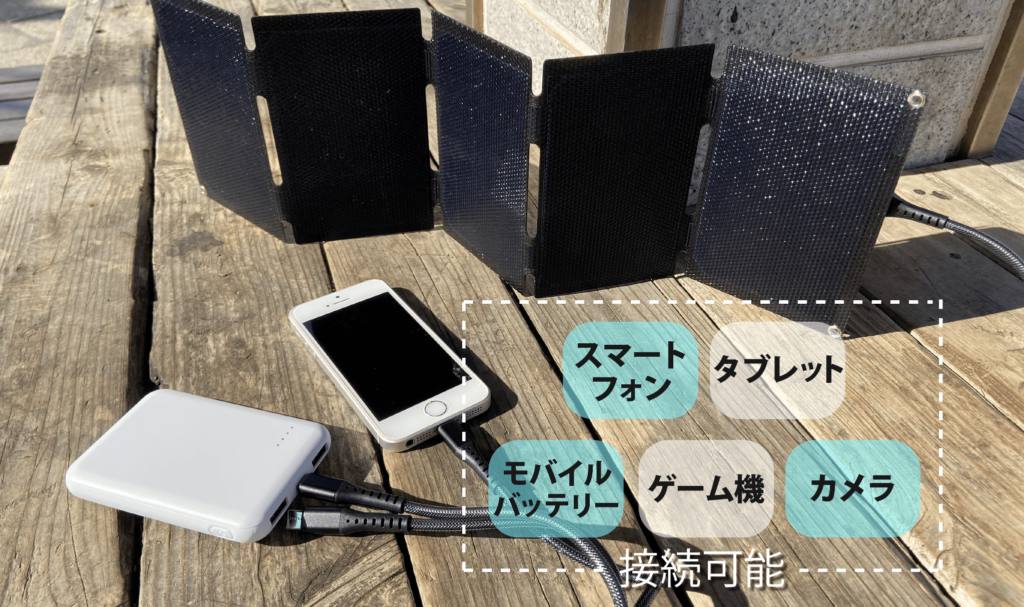 A:ソーラーパネルを太陽に向けて開き、お使いのデバイスにUSBワイヤーを差し込むだけです。